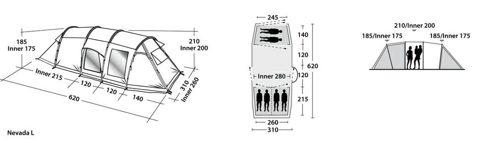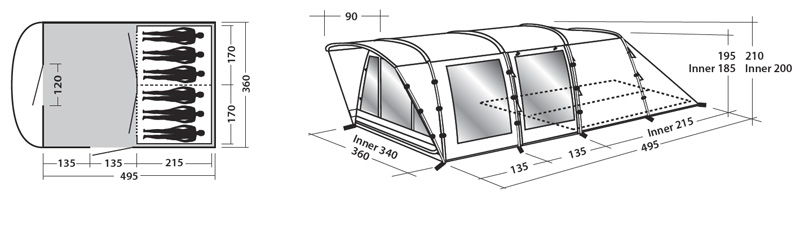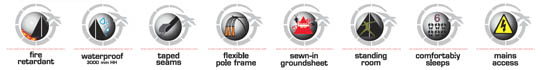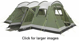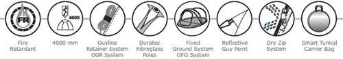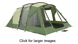 pre-attached luminous guys, heavy-duty Outwell zips, and a mesh