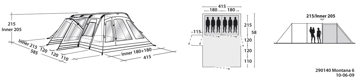 spacious Outwell Montana 6 pitches easily all in one go, sleeping up to