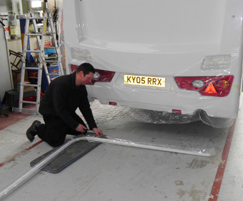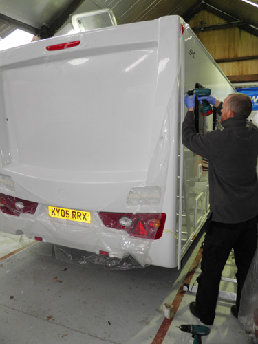 Replacing damaged rear panel on a Lunar Lexon.