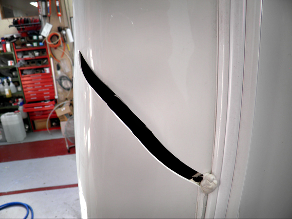 Lunar Lexon rear panel accident damage.