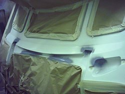 Serious damp problems require interior panels to be removed and any damaged framing would also need to be replaced. This procedure is important to retain the rigidity of the caravan which depends on the sandwich of materials being bonded together. Proper sealing of all mouldings are then necessary to prevent any re-occurance.