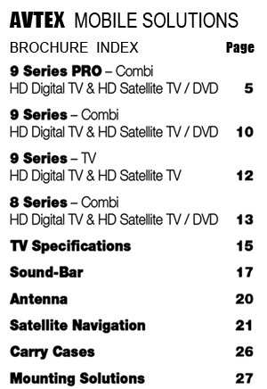 We stock and supply Avtex and Vision Plus mobile televisions, aerial systems, sat-navs, audio systems & signal finders.